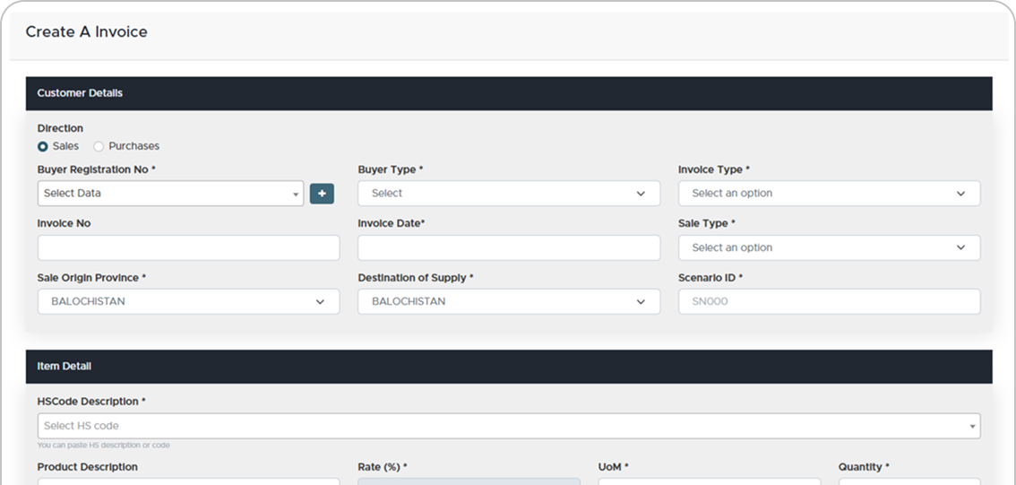 Every invoice includes the mandatory FBR QR code and IRN automatically.